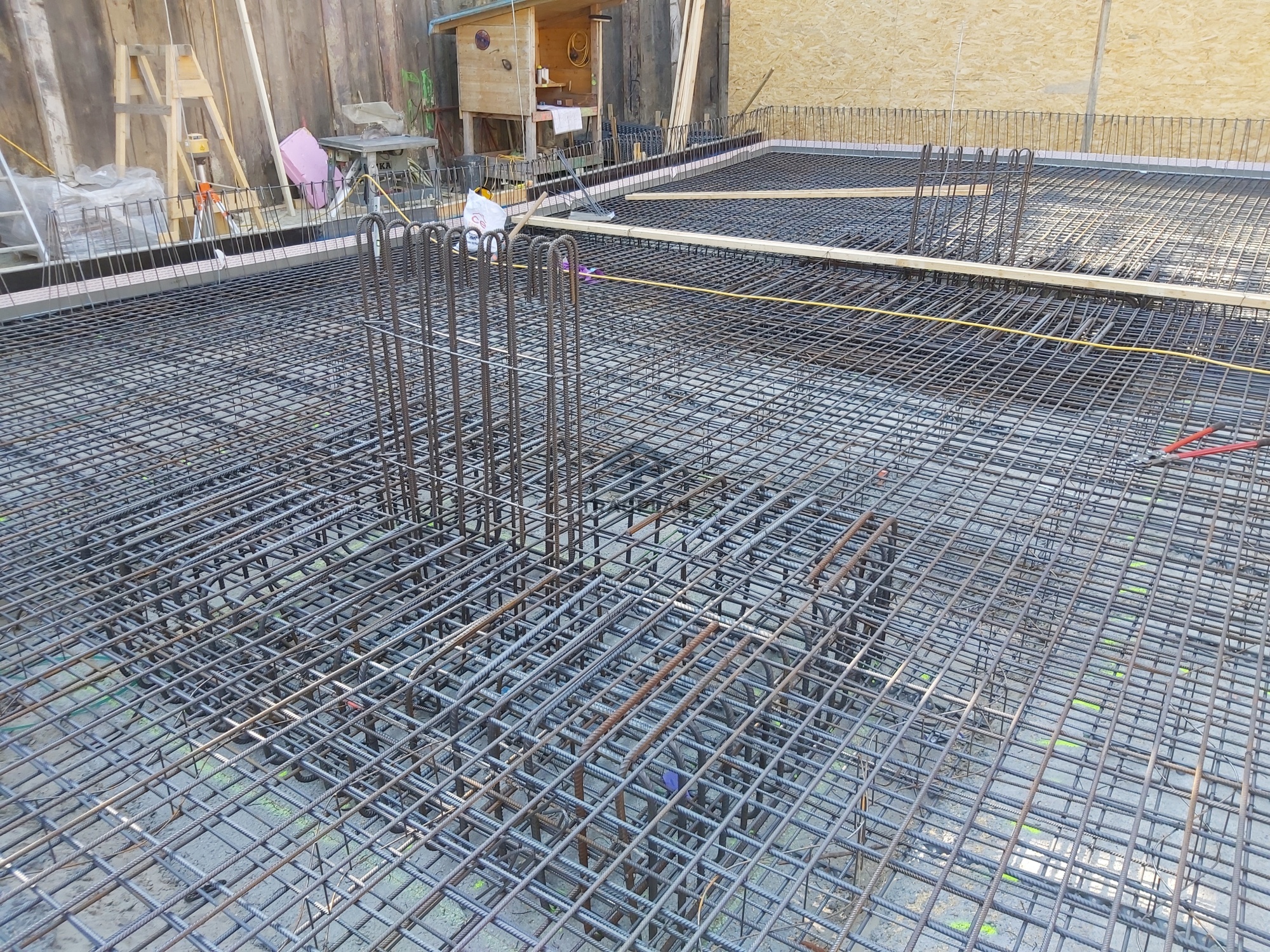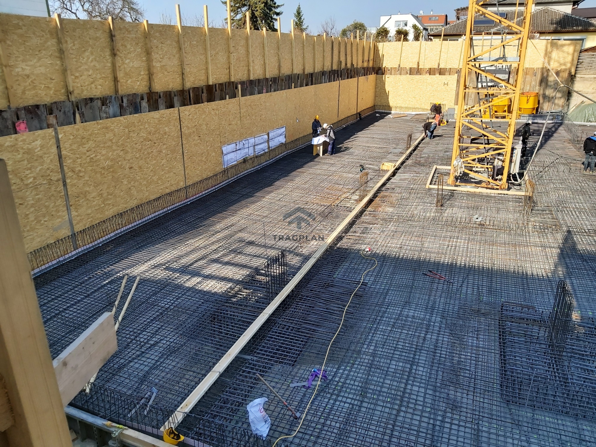 Die Baugrube wurde mittels Bohrträgerwänden gesichert, um eine stabileBaugrubenwand und Arbeitssicherheit während der Fundament - Kellerarbeitenzugewährleisten.