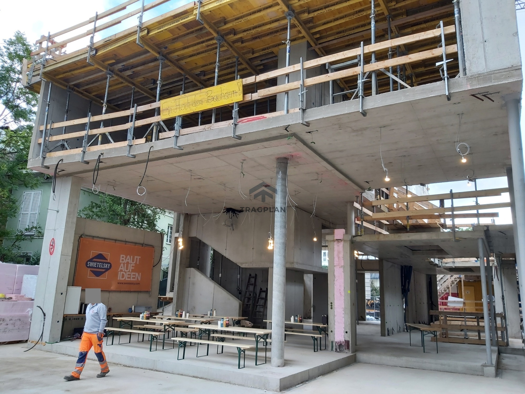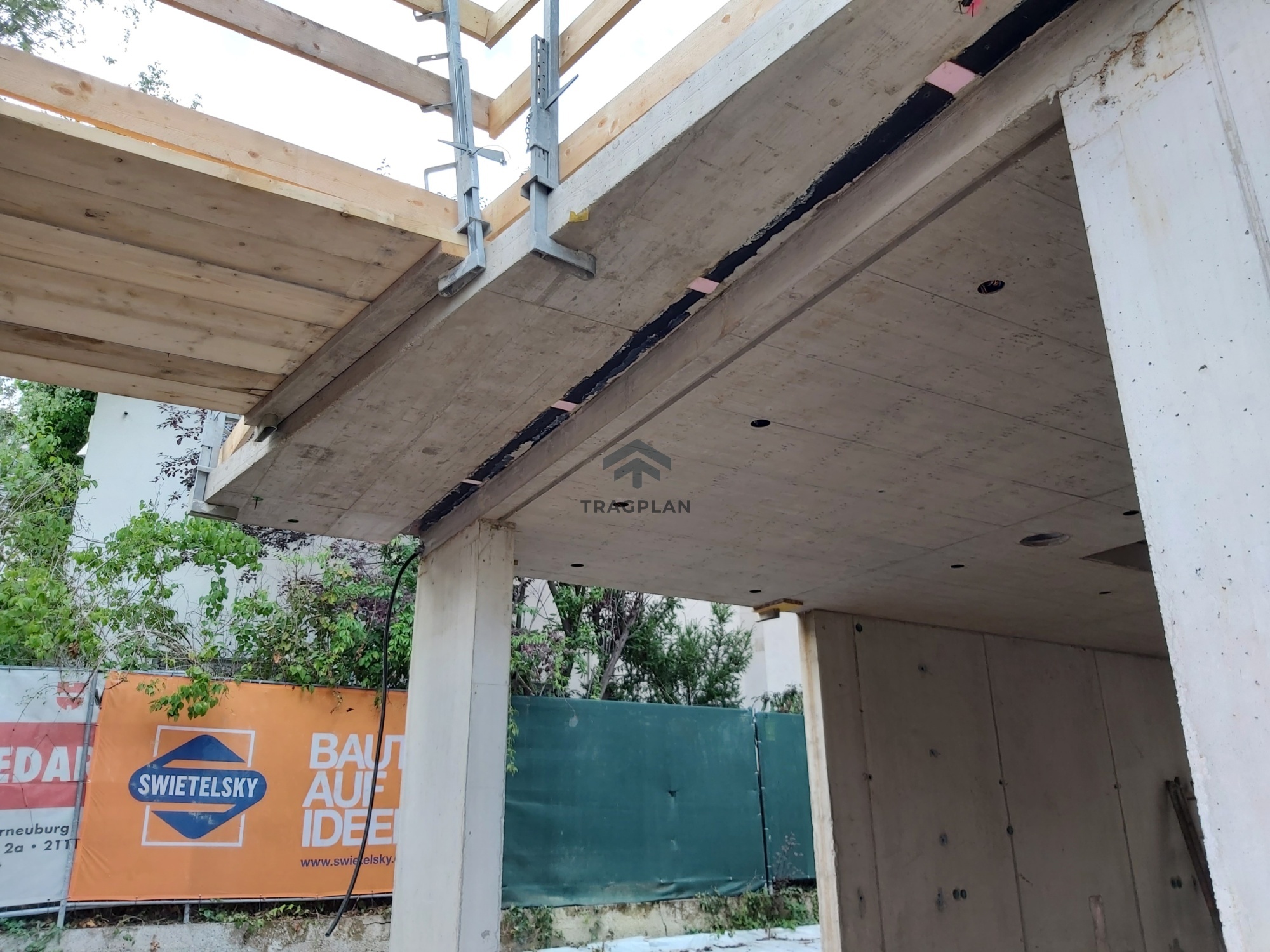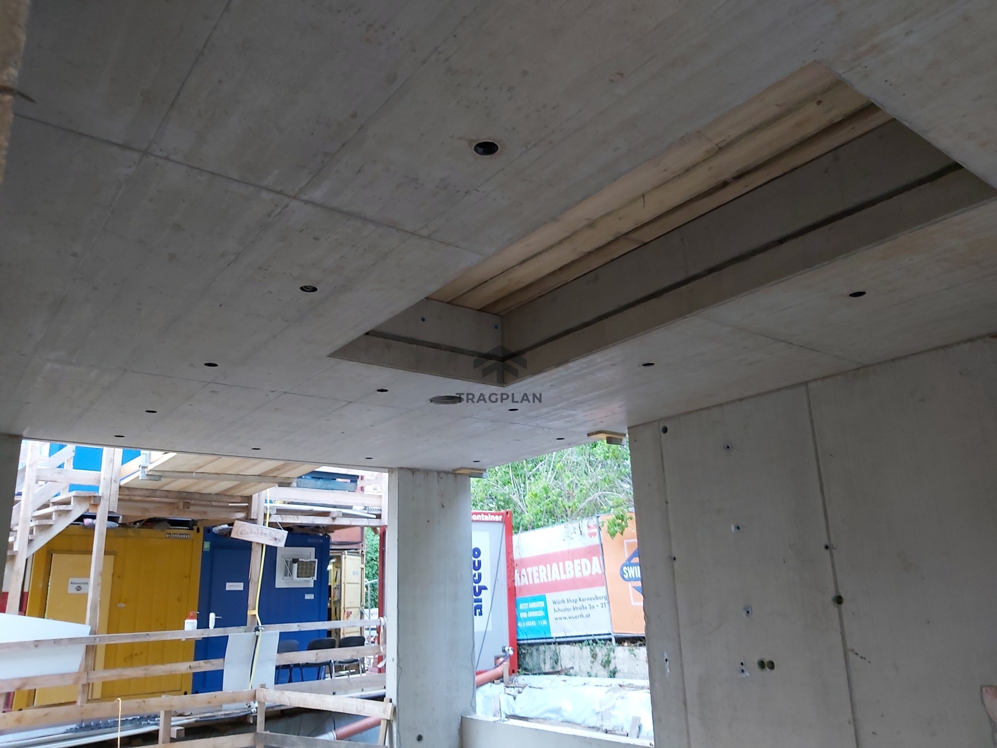 wurden als Stahlbetondecken ausgebildet. Aufgrund dergeplanten großflächigen Verglasungen wurde eine minimale Durchbiegung der tragenden Decken erforderlich, um Schäden an Fassadenelementen zu vermeiden.