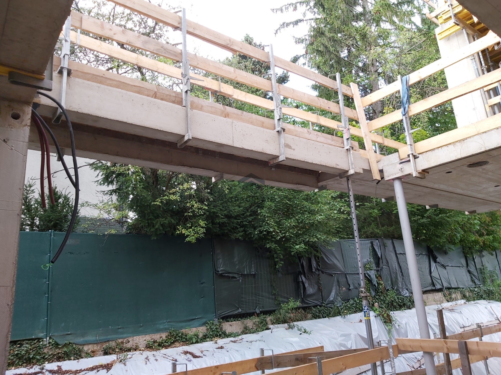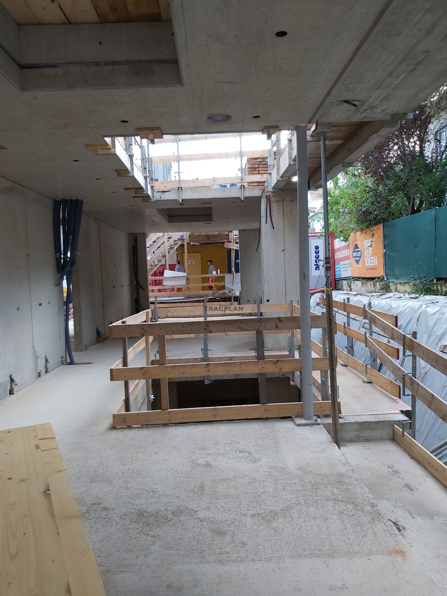 Die einseitige Baugrubensicherung erfolgt mittels aufgelöste Bohrpfahlwand mit einem Durchmesser von 52 cm mit Spritzbetonausfachung welcheabschnittsweise hergestellt wurde.
