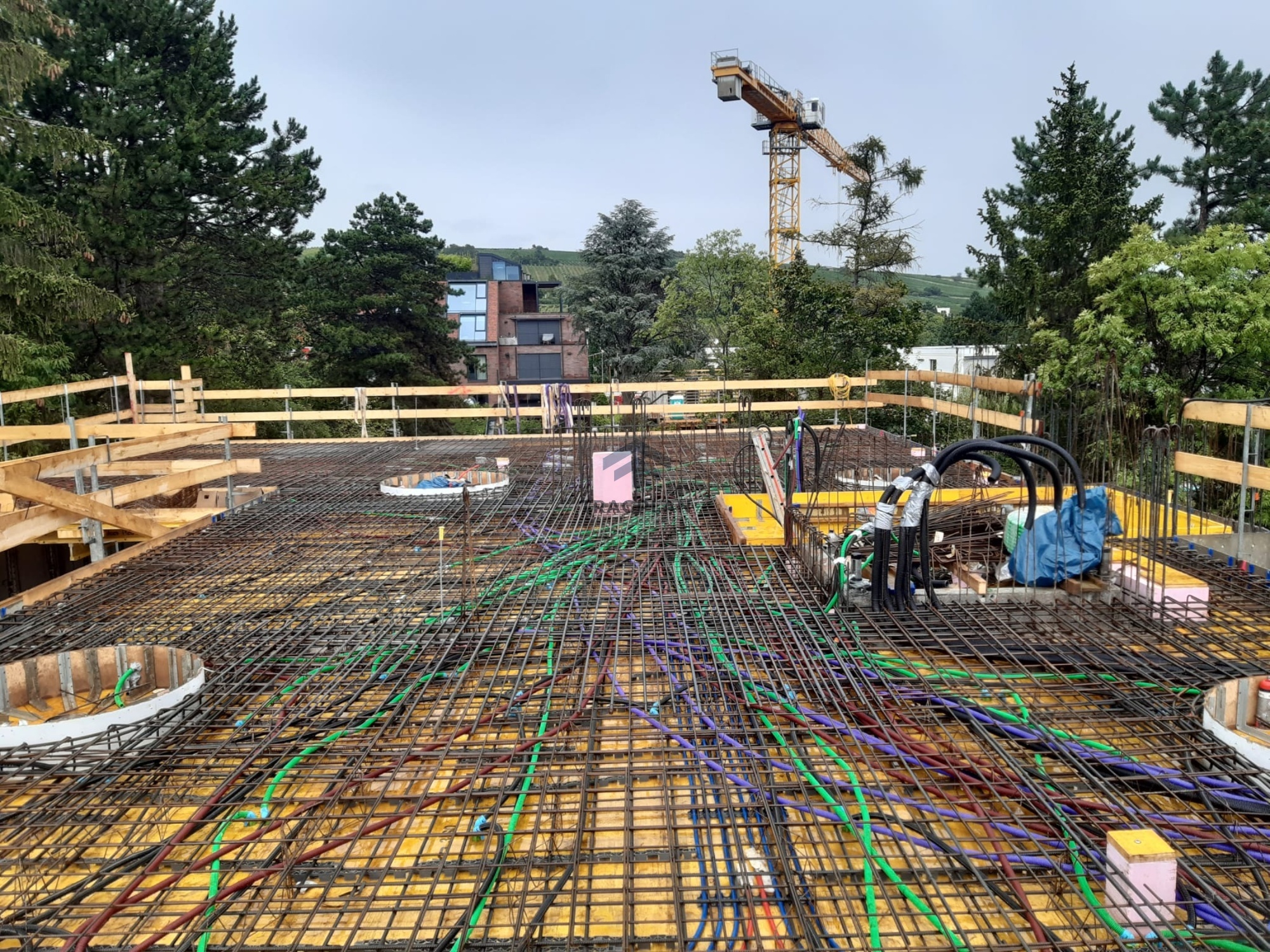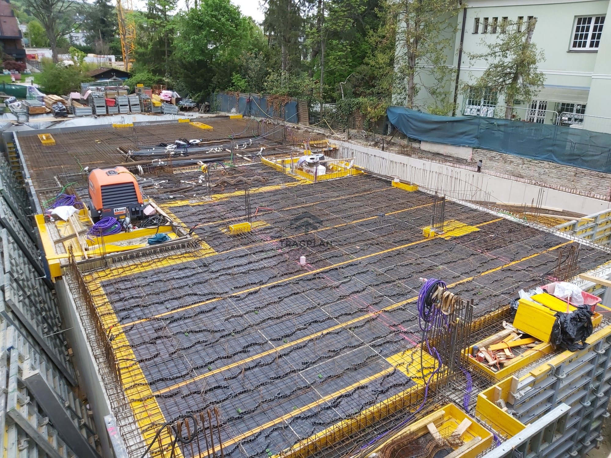 Die Gründung des Gebäudeserfolgte über eine durchgehende Stahlbeton-Fundamentplatte, welche die vertikalen Lasten gleichmäßig in den Baugrund ableite.