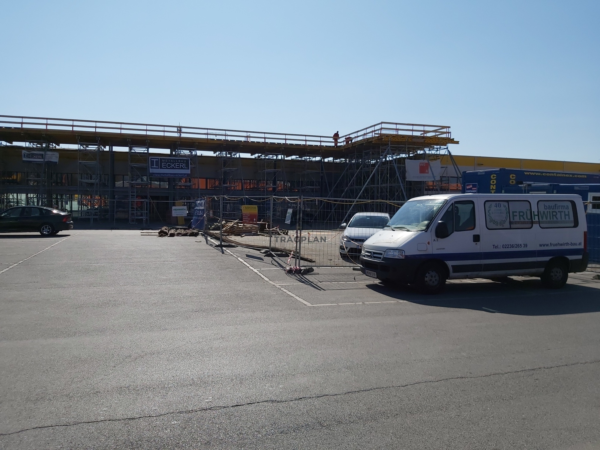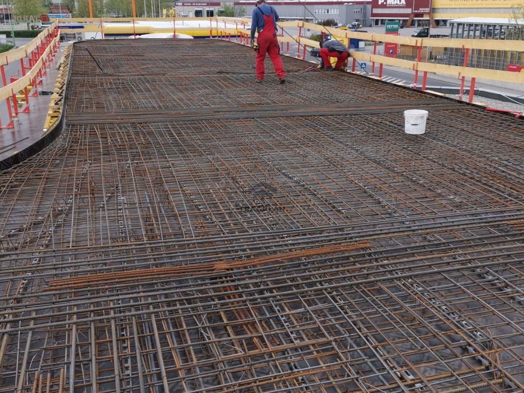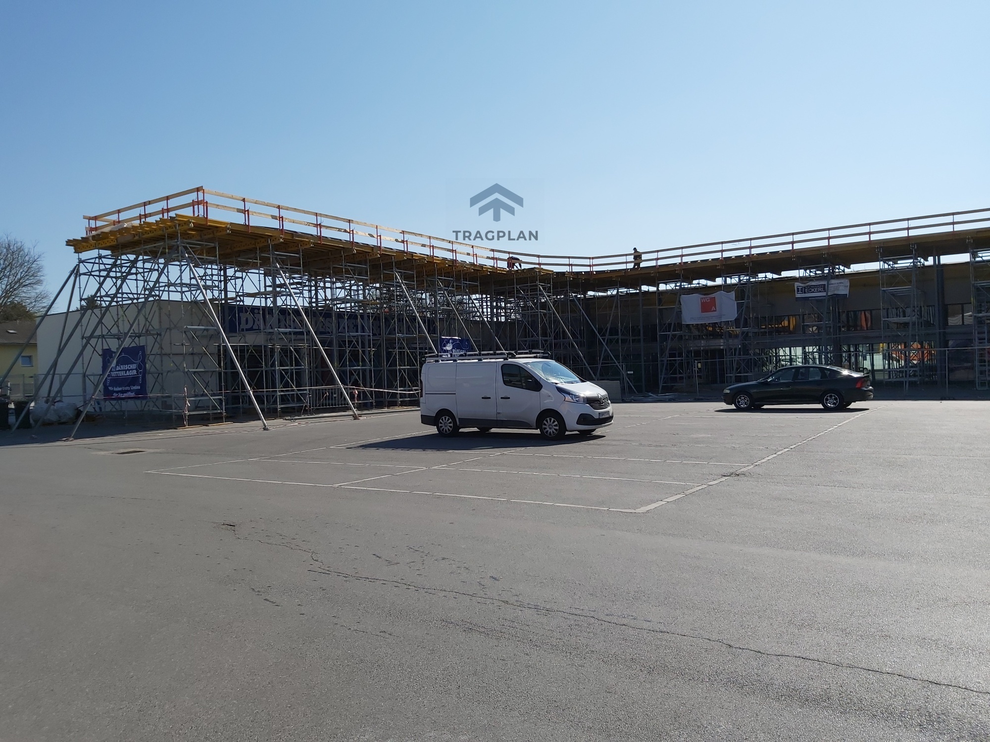 Das Tragwerk des Vordaches sowie des Umbaus desFachmarktzentrums besteht aus einer Kombination von Stahl- undStahlbetonkonstruktionen.