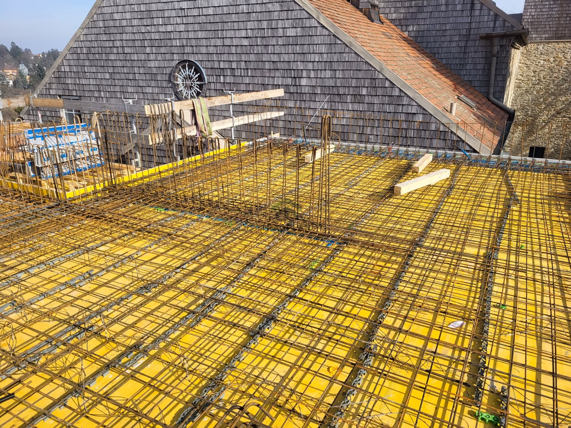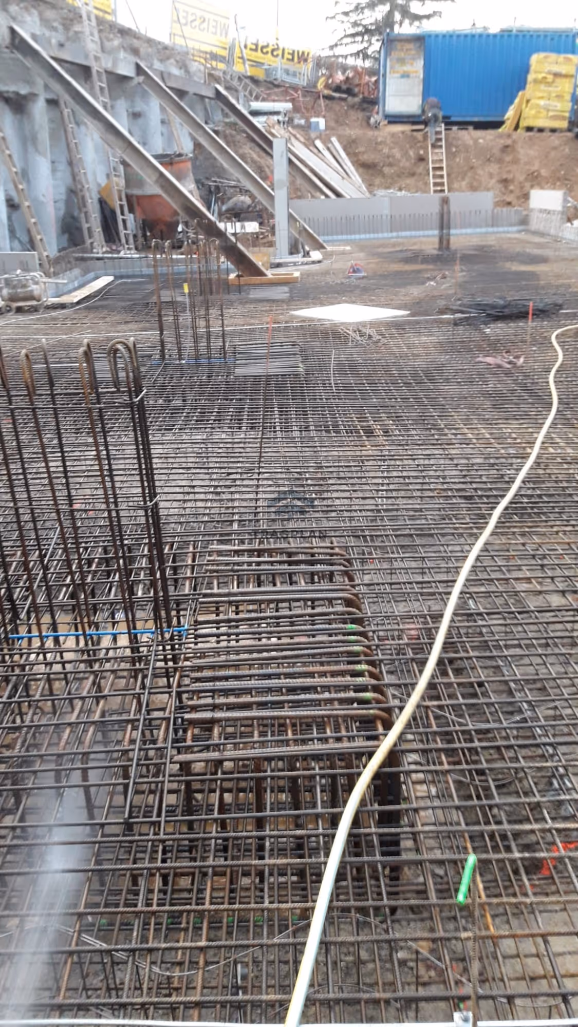 Die Gründung des Gebäudeserfolgte über eine durchgehende Stahlbeton-Fundamentplatte, welche die vertikalen Lasten gleichmäßig in den Baugrund ableite.
