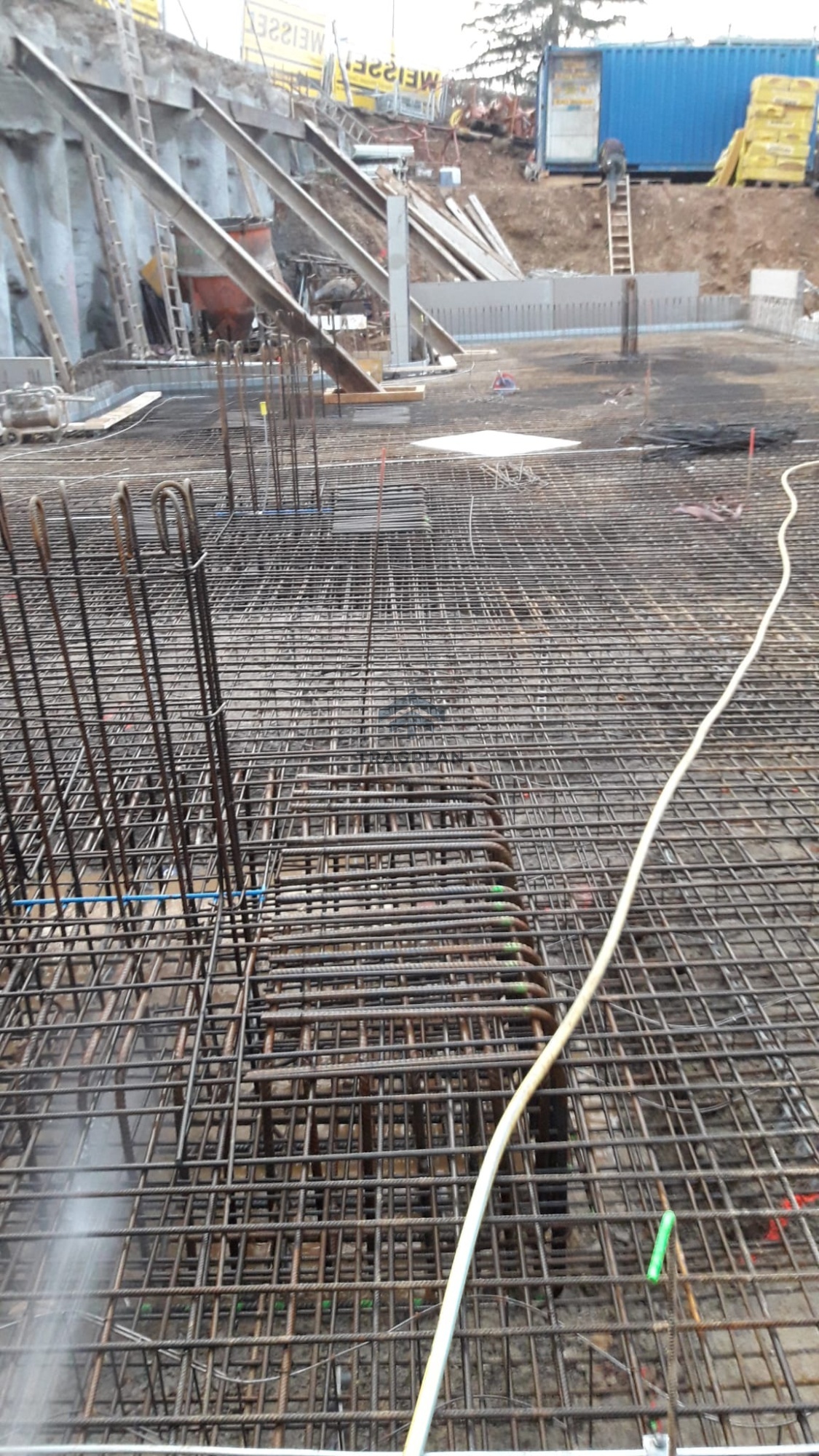 Die Gründung des Gebäudeserfolgte über eine durchgehende Stahlbeton-Fundamentplatte, welche dievertikalen Lasten gleichmäßig in den Baugrund ableite.