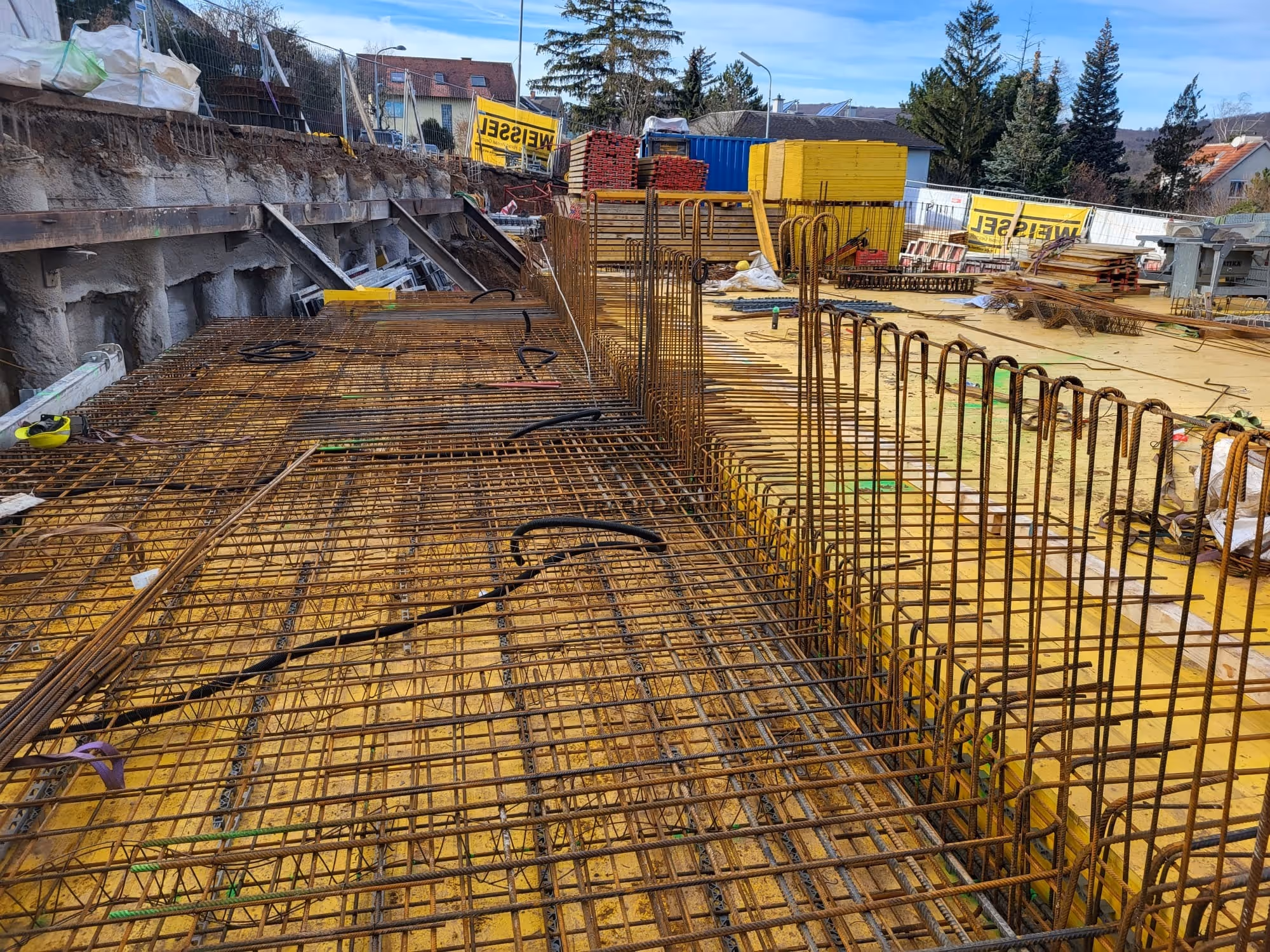 wurden überwiegend als Ortbeton-Stahlbetonwände ausgeführt.In geeigneten Bereichen kamen Stahlbeton-Hohlwände zum Einsatz, um Bauzeit und Kostenaufwand zu optimieren.