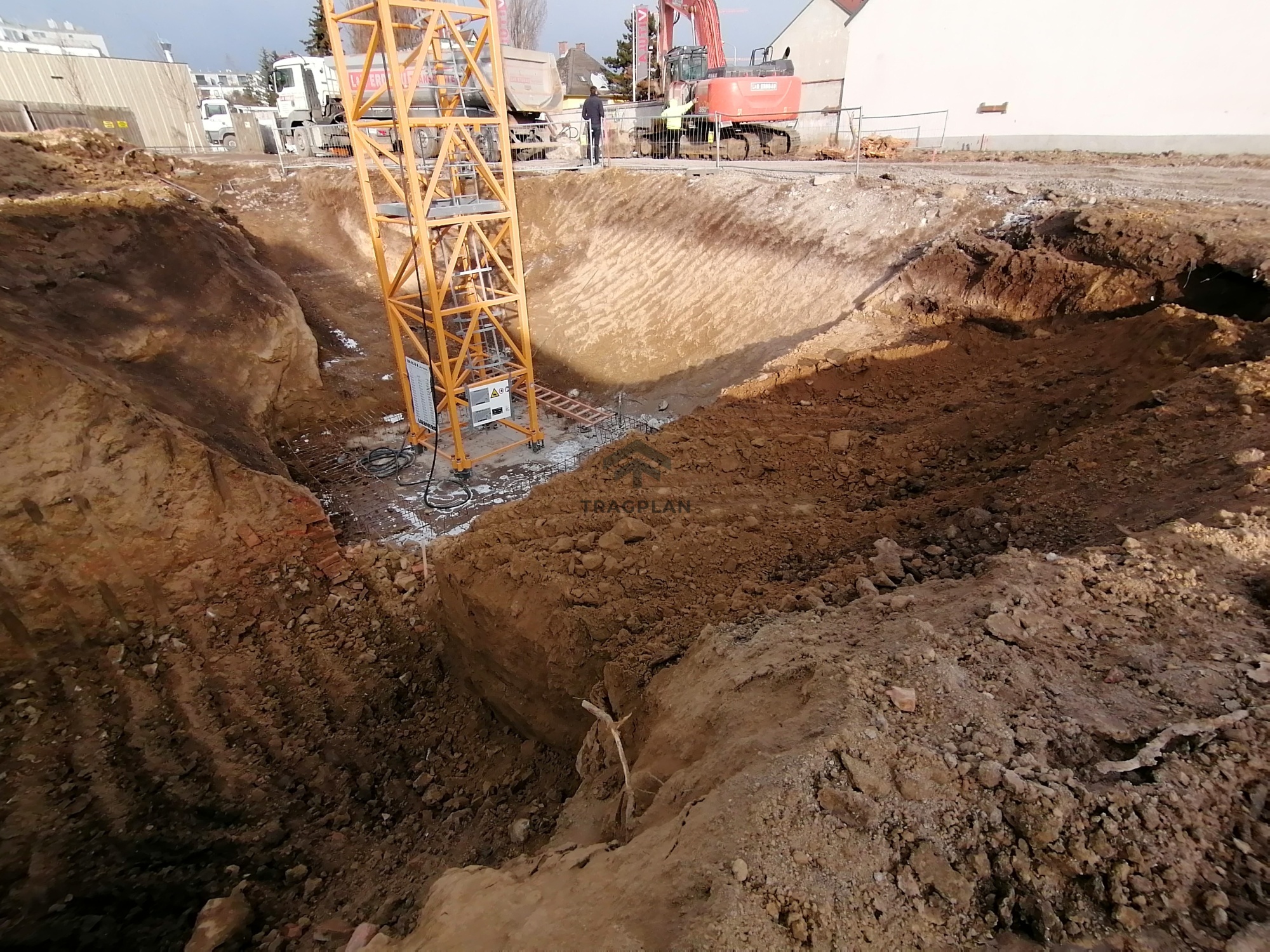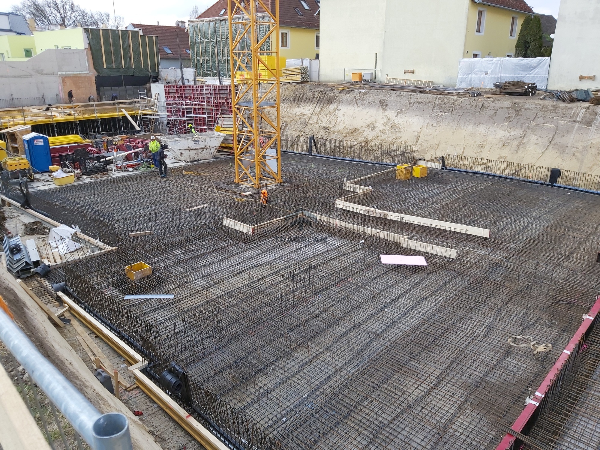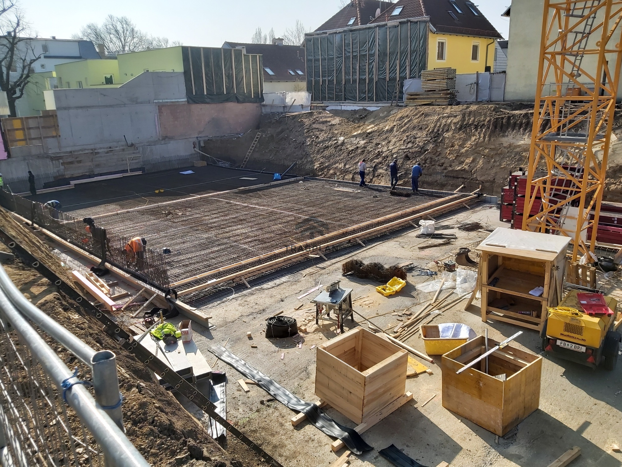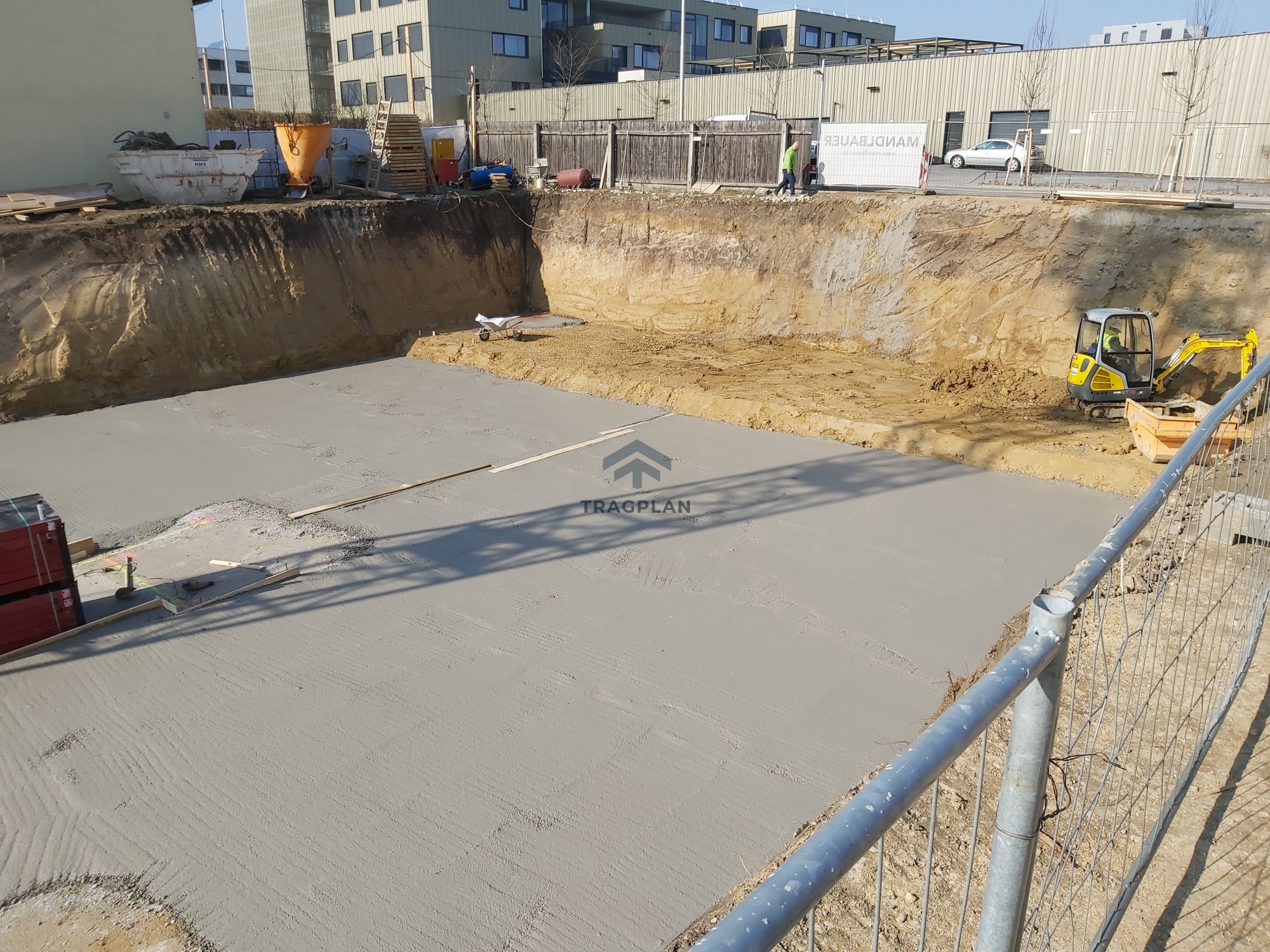 Die Gründung des Gebäudeserfolgte über eine durchgehende Stahlbeton-Fundamentplatte, welche dievertikalen Lasten gleichmäßig in den Baugrund ableite.