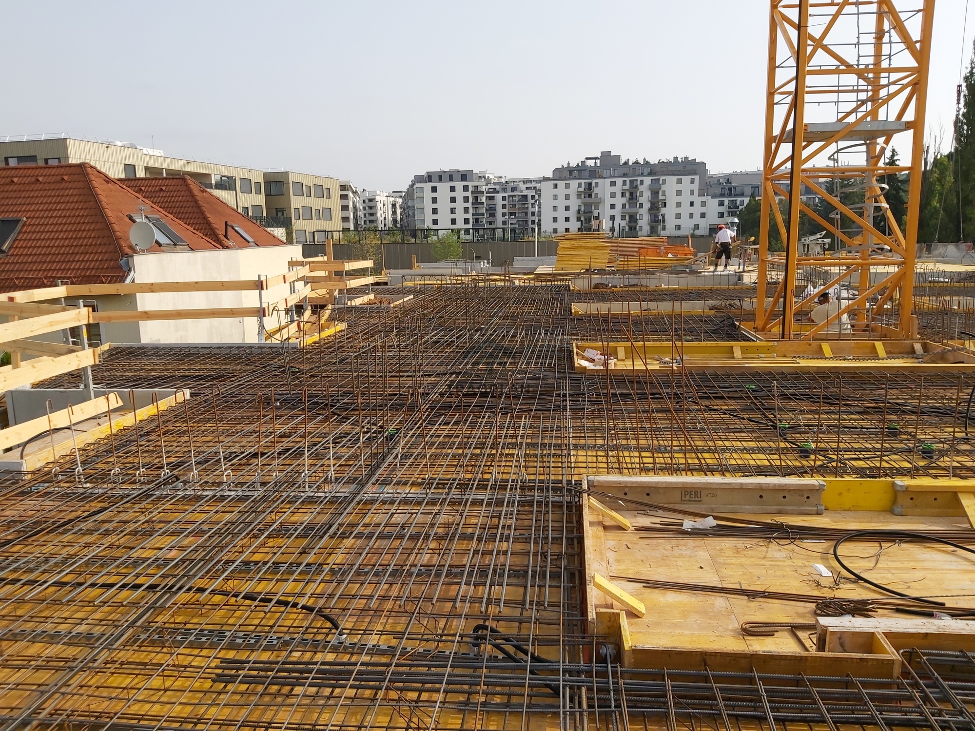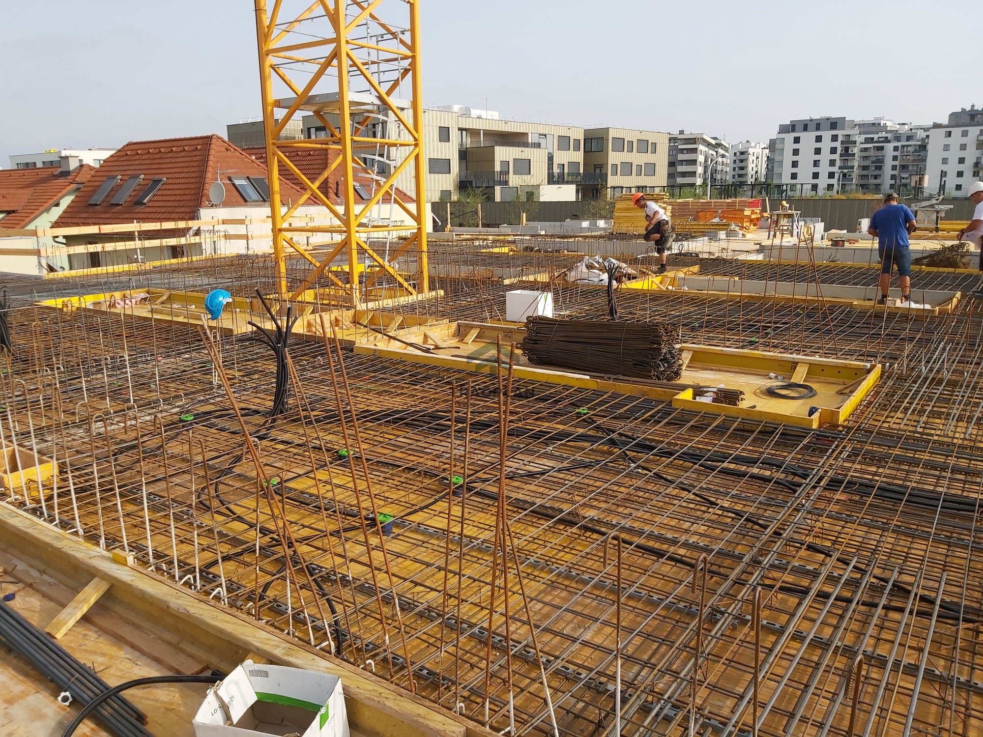 wurden überwiegend als Ortbeton-Stahlbetonwände ausgeführt. AbErdgeschoss wurden Hohlwände verwendet, um die Bauzeit und die Kosten zuoptimieren, wo dies statisch und konstruktiv möglich war.