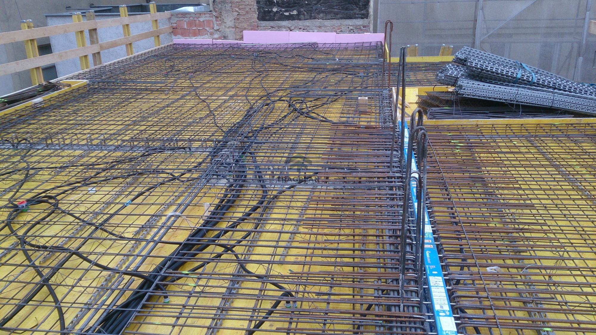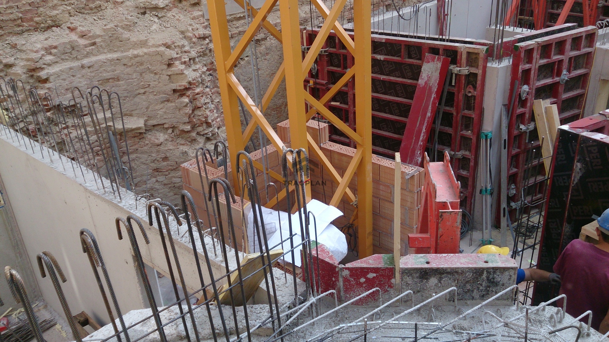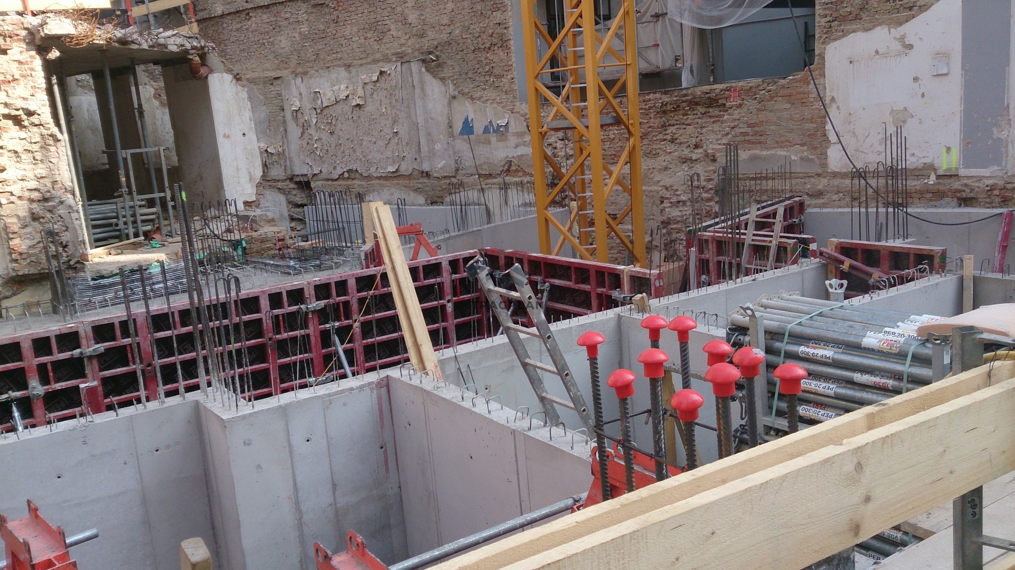 Ab dem 1. Obergeschoss erfolgte die Ausführung der tragenden Wände in kombinierter Bauweise aus Stahlbeton- und Mauerwerkswänden, wobei Mauerwerk dort eingesetzt wurde, wo es statisch möglich und wirtschaftlich sinnvoll war.