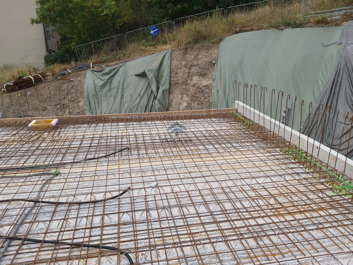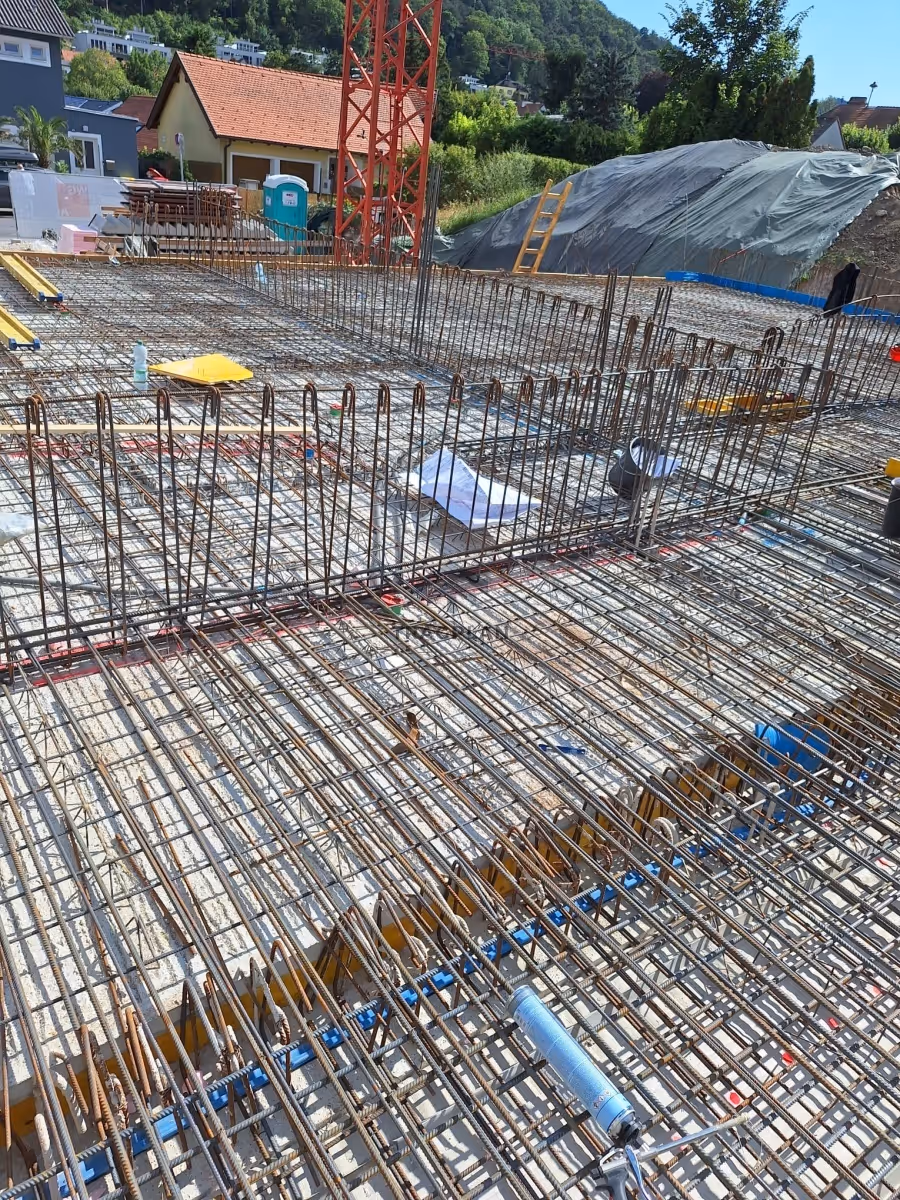 Die Gründung des Gebäudeserfolgte über eine durchgehende Stahlbeton-Fundamentplatte, welche die vertikalen Lasten gleichmäßig in den Baugrund ableite.