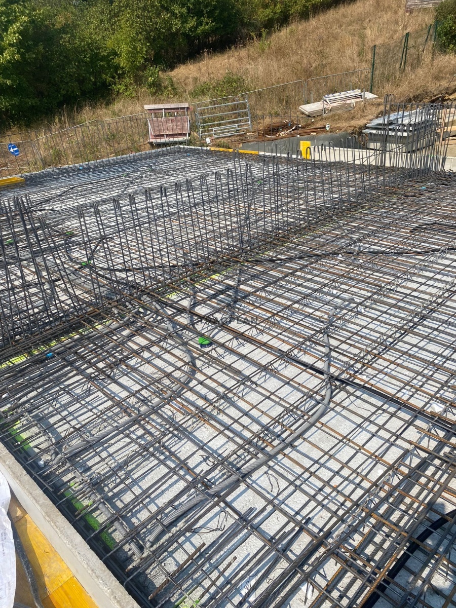 wurden als Stahlbetondecken ausgebildet. Soweit möglich,kommen auch vorgefertigte Elementdecken zum Einsatz, um die Bauzeit zuverkürzen. Die Balkone und Stiegenläufe wurden als vorgefertigte Stahlbetonplatten hergestellt.