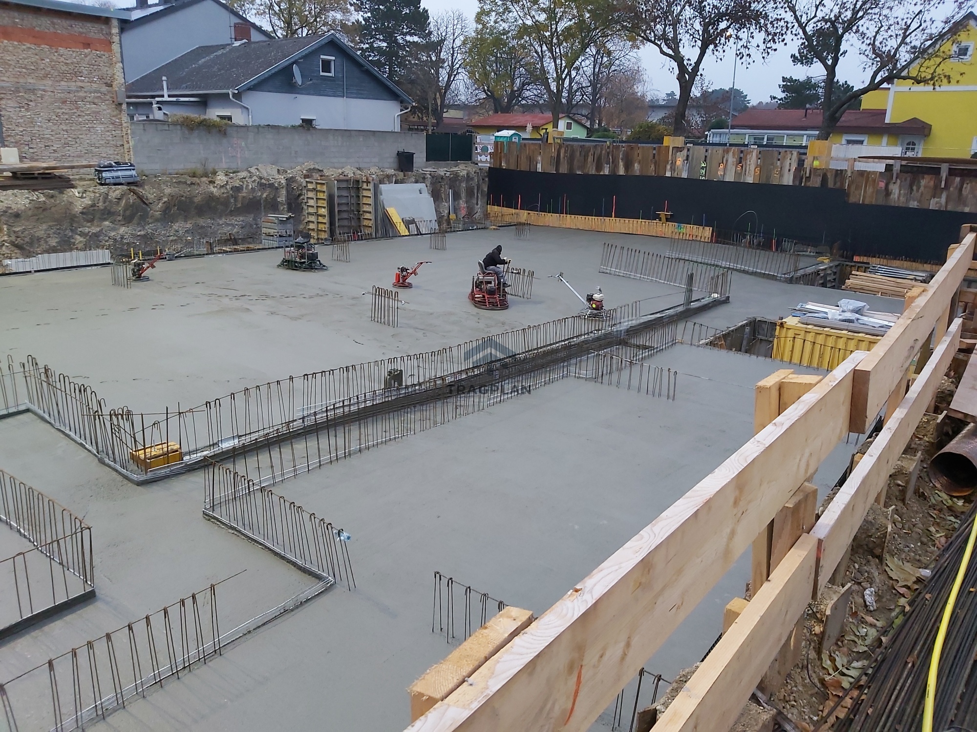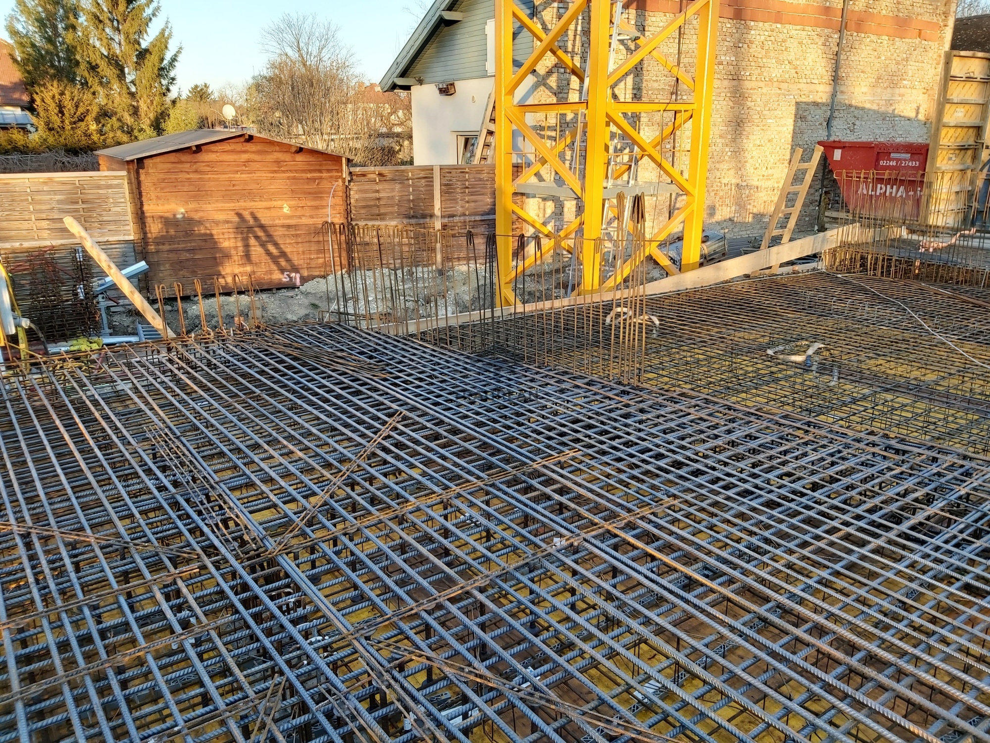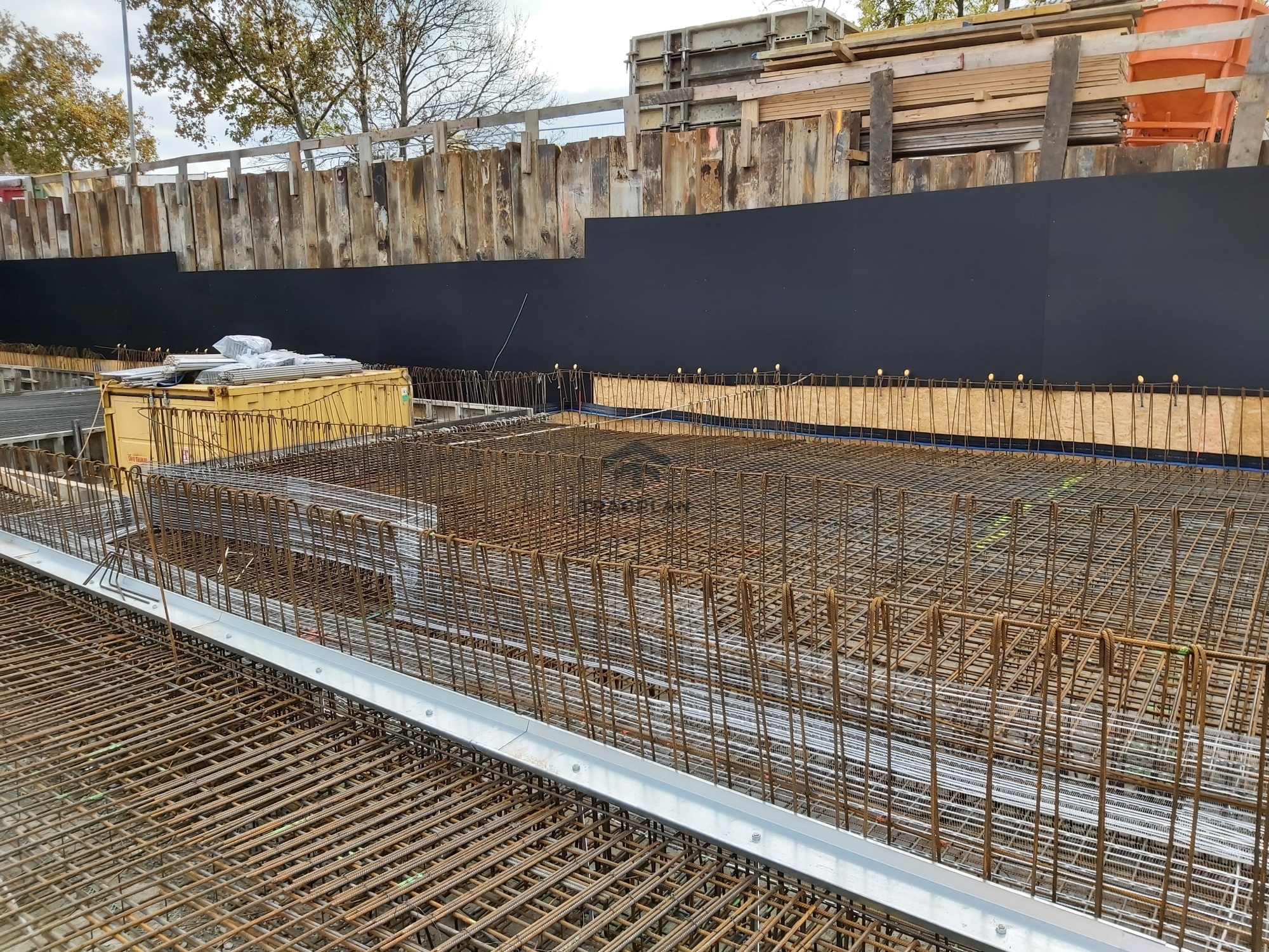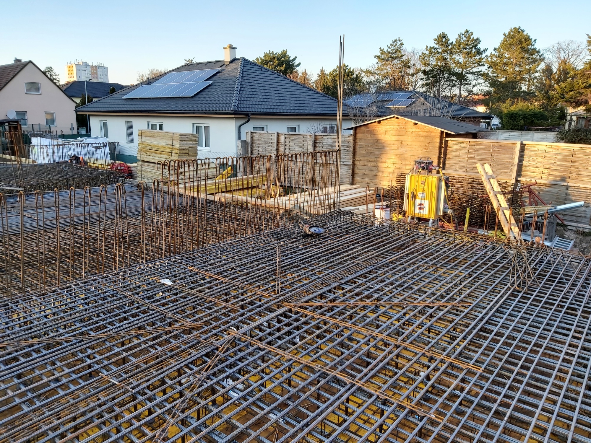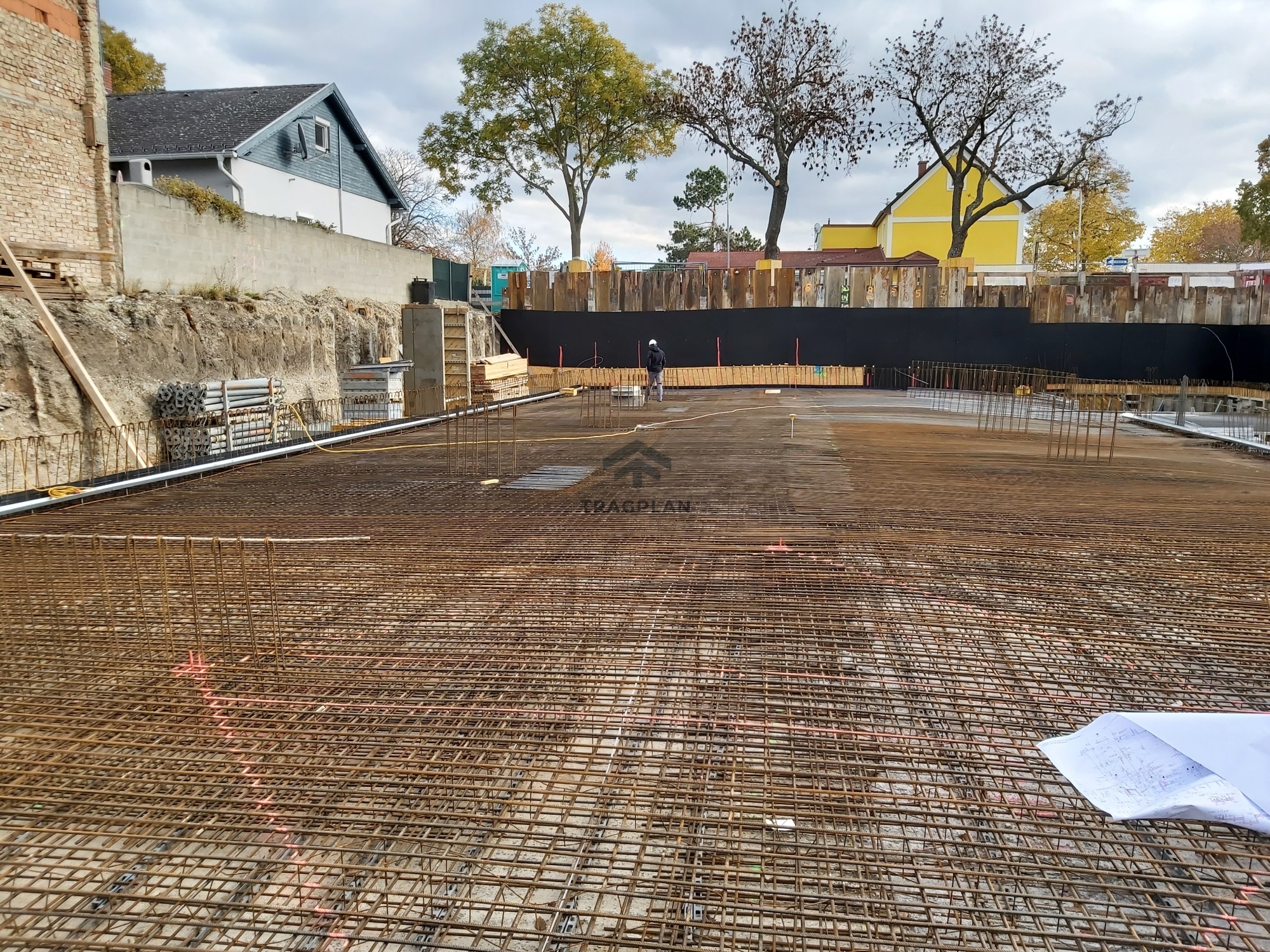 Die Baugrube wurde mittels Bohrträgerwänden gesichert, um eine stabile Baugrubenwand und Arbeitssicherheit während der Fundament - Kellerarbeiten zugewährleisten.