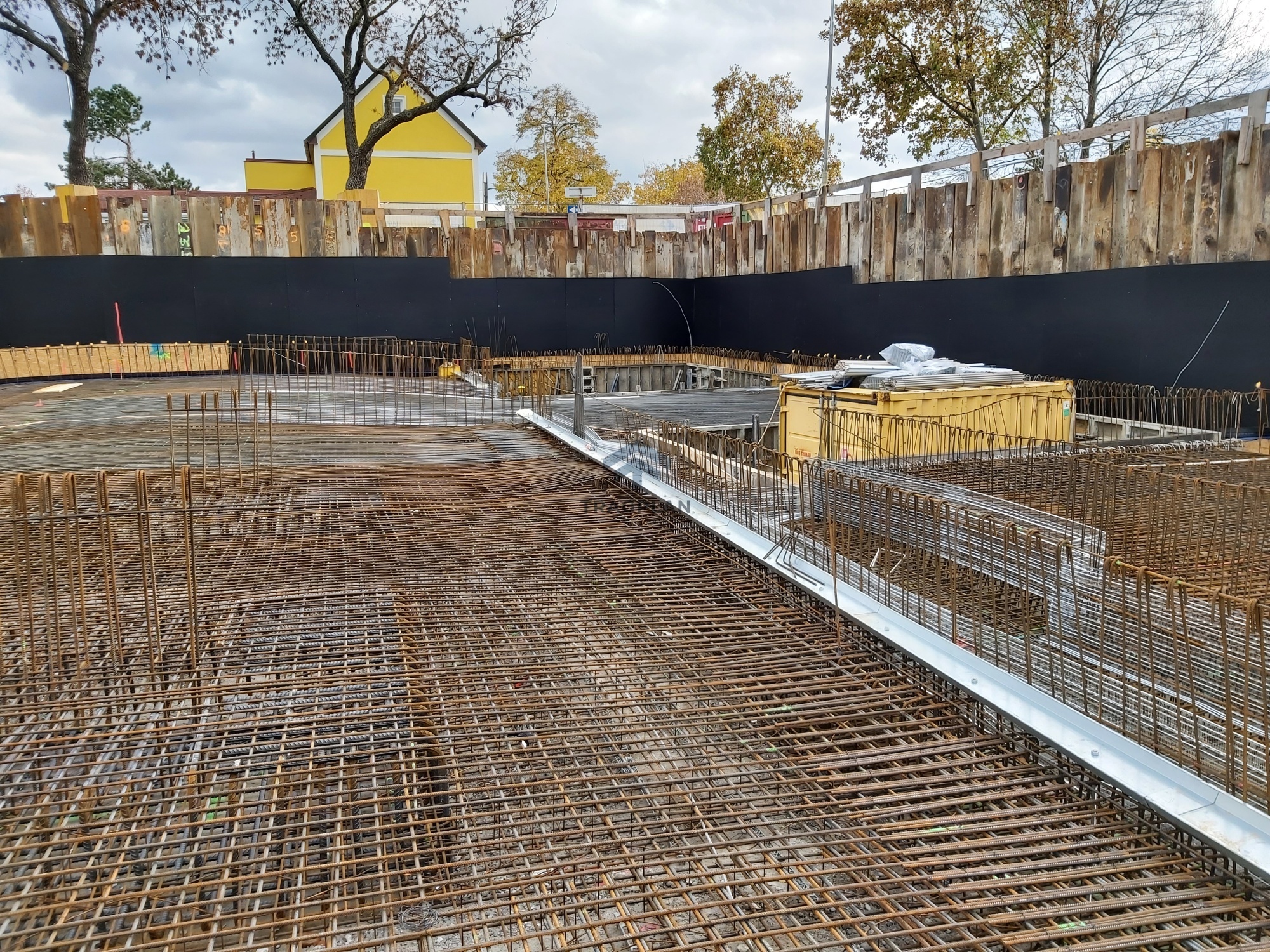 Die Gründung des Bauwerks erfolgt über eine durchgehende Stahlbeton-Fundamentplatte, welche flächig auf dem tragfähigen Baugrund aufliegt.