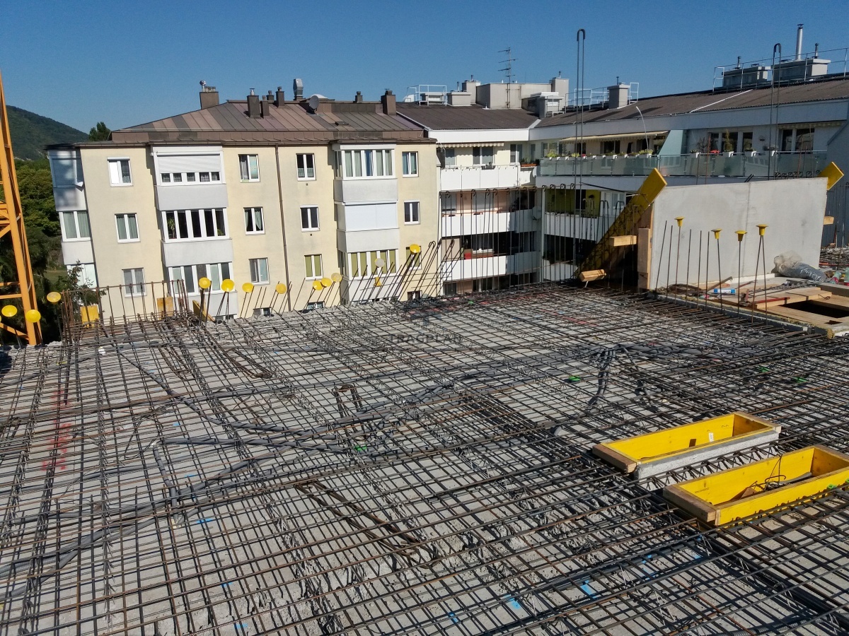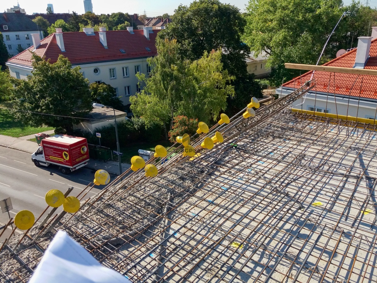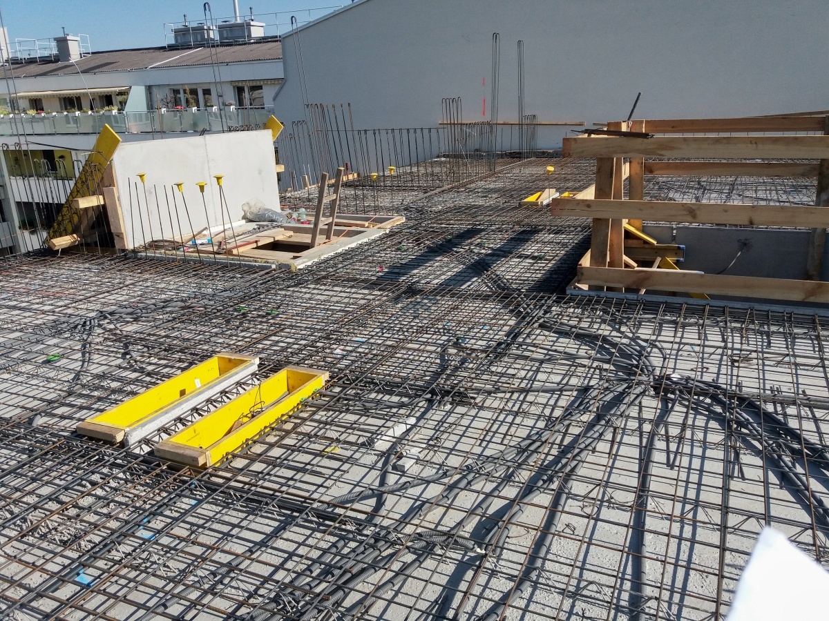 wurden als Stahlbetondecken ausgebildet. Soweit möglich,kommen auch vorgefertigte Elementdecken zum Einsatz, um die Bauzeit zuverkürzen. Die Balkone wurden als vorgefertigte Stahlbetonplatten hergestellt.