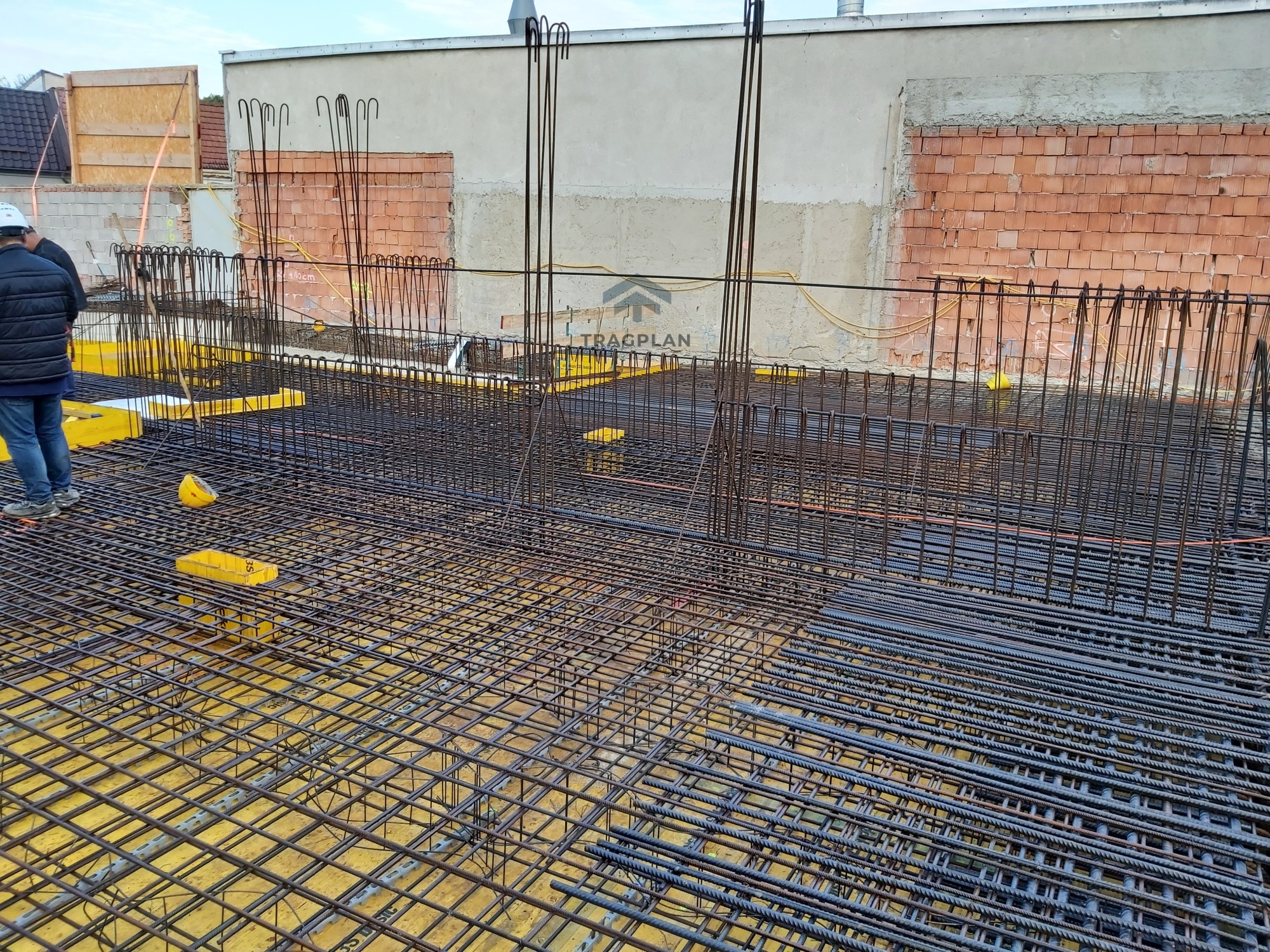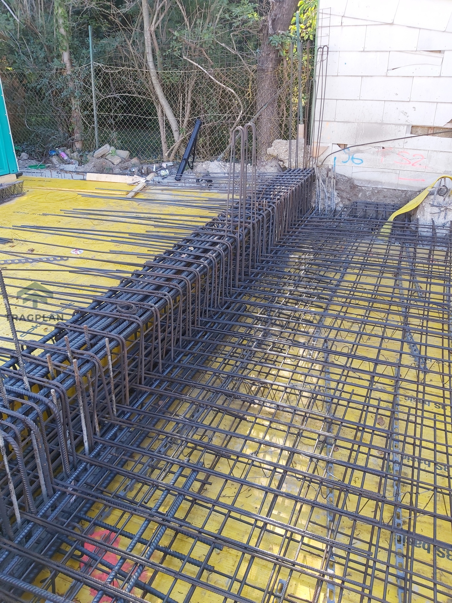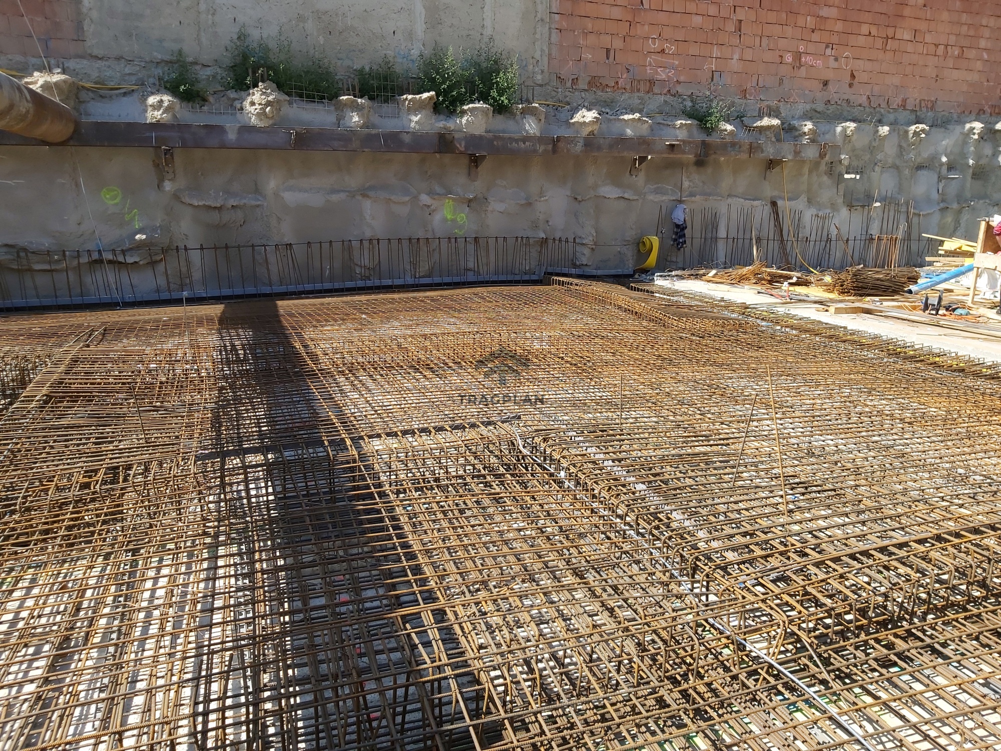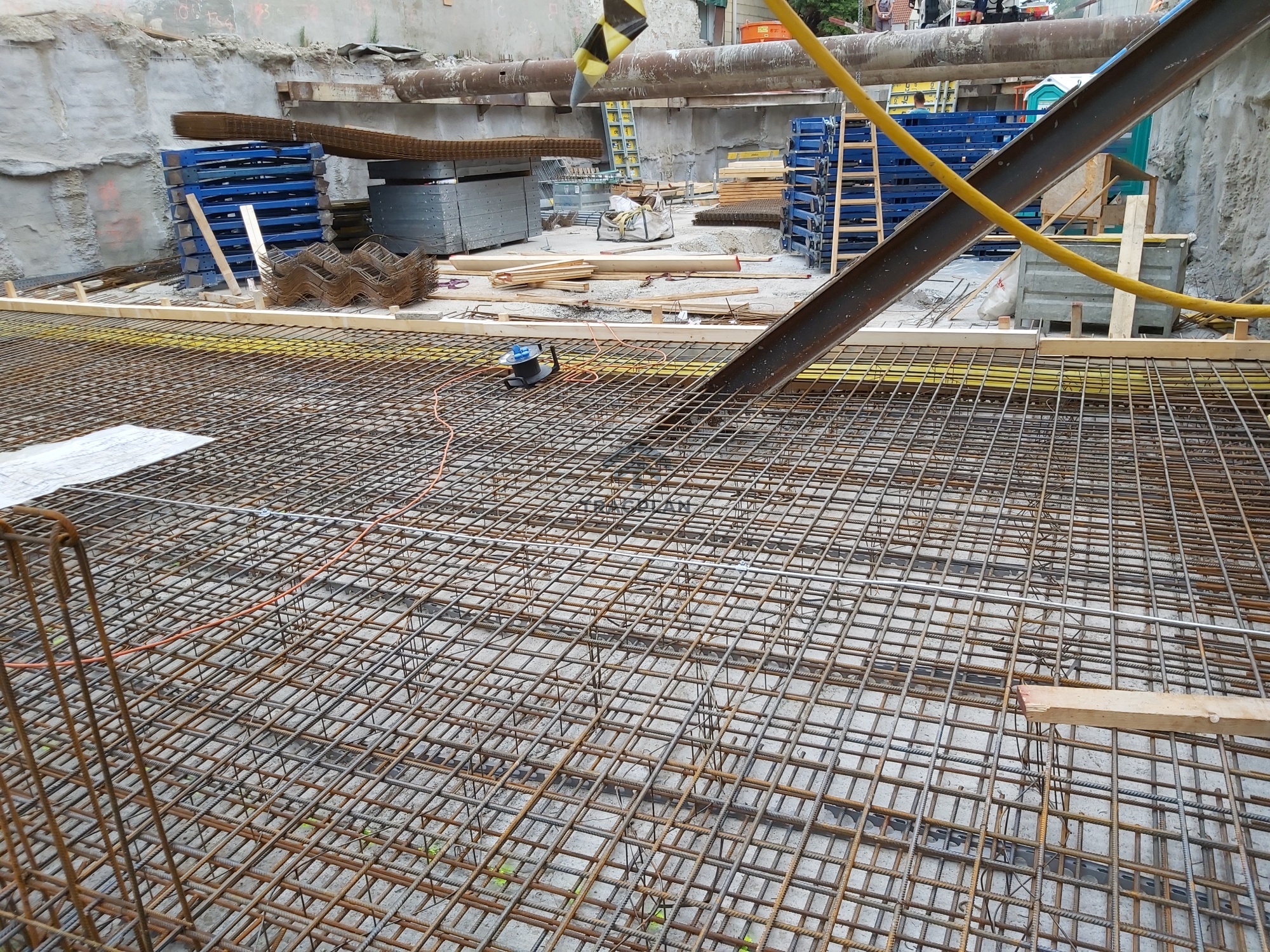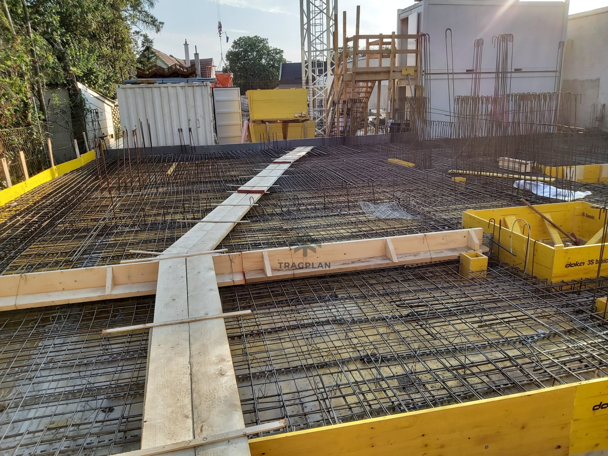 Die Fundamentplatte wurde in Stahlbeton ausgeführt undbildete die tragende Basis des gesamten Bauwerks. Sie verteilte die vertikalenLasten aus den darüberliegenden Geschossen gleichmäßig auf den Baugrund undgewährleistete eine sichere Gründung.