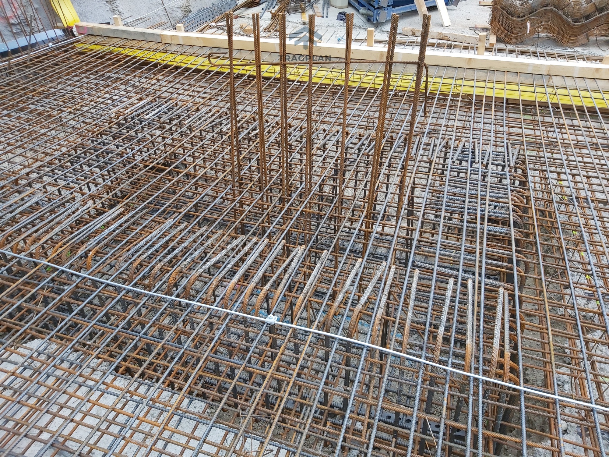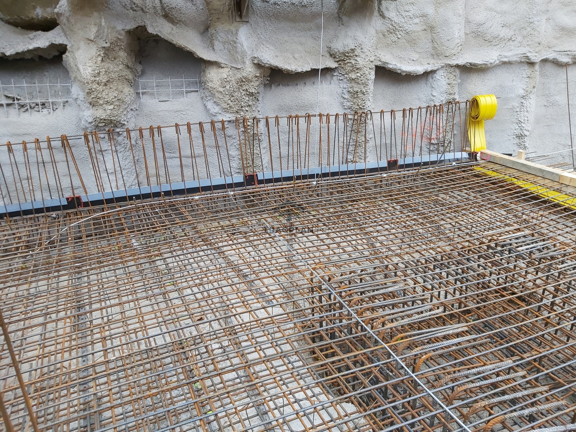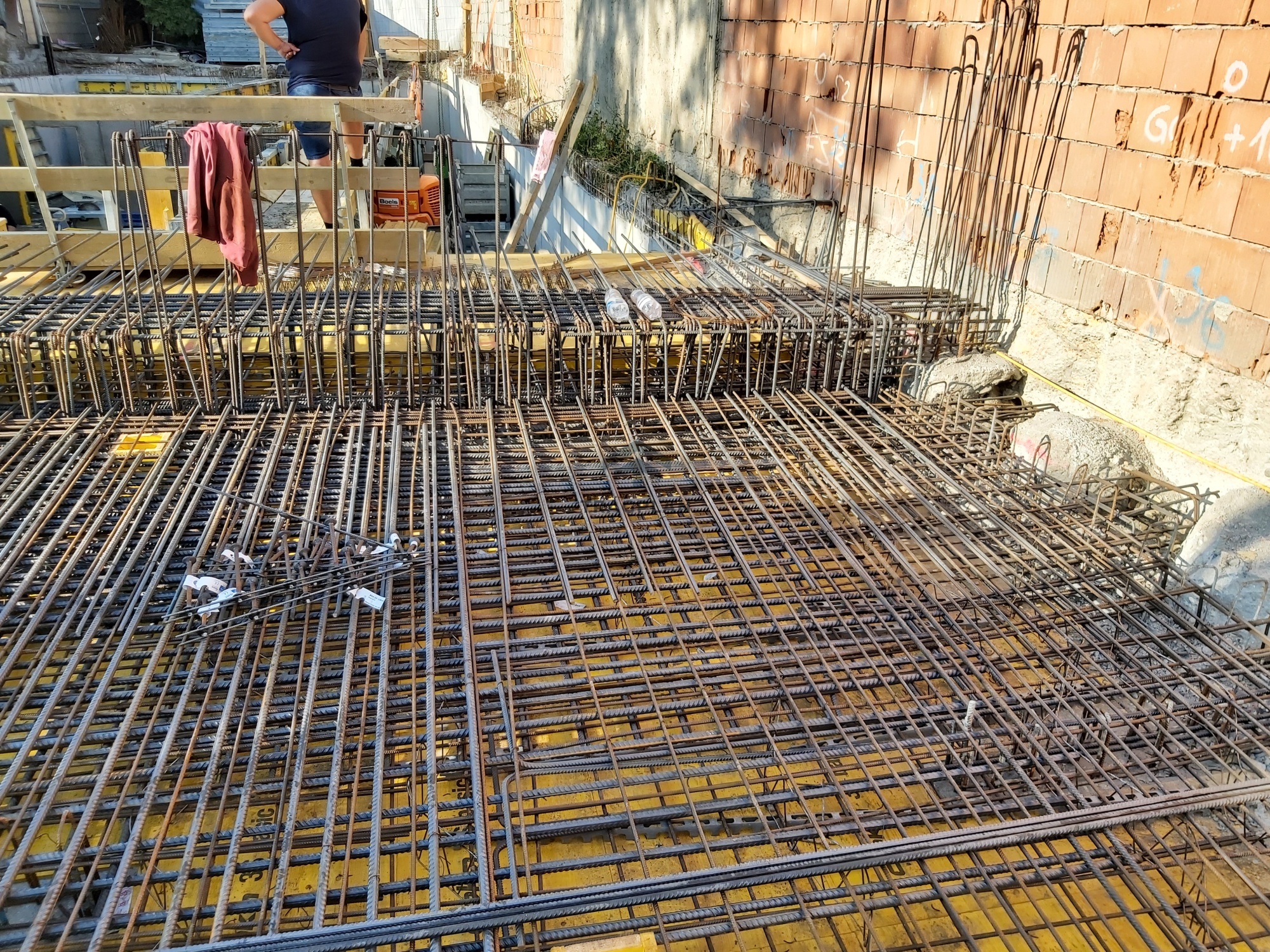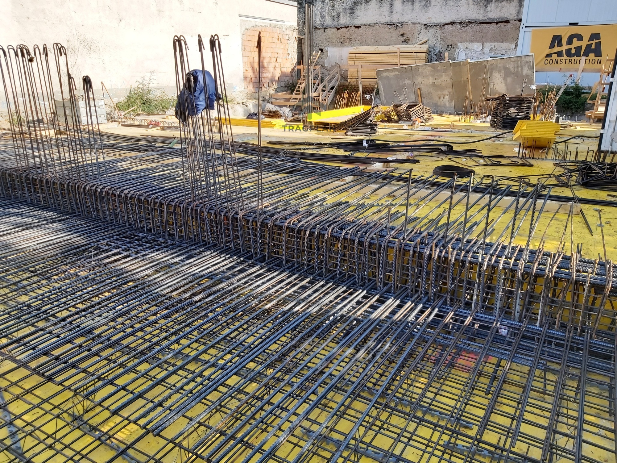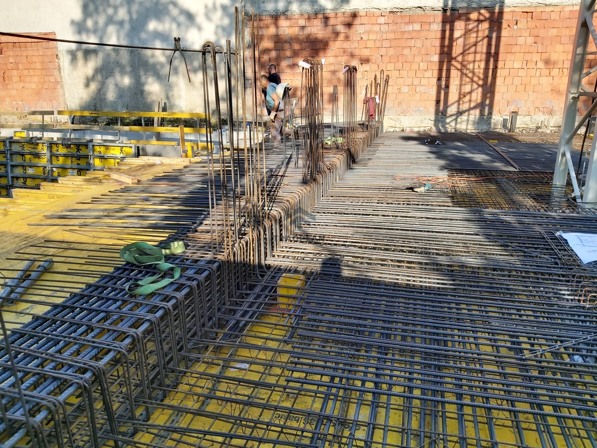 Die Fundamentplatte wurde in Stahlbeton ausgeführt undbildete die tragende Basis des gesamten Bauwerks. Sie verteilte die vertikalenLasten aus den darüberliegenden Geschossen gleichmäßig auf den Baugrund undgewährleistete eine sichere Gründung.